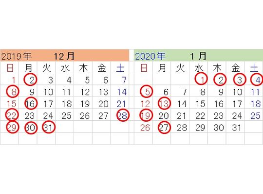 年末年始営業のご案内